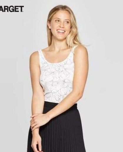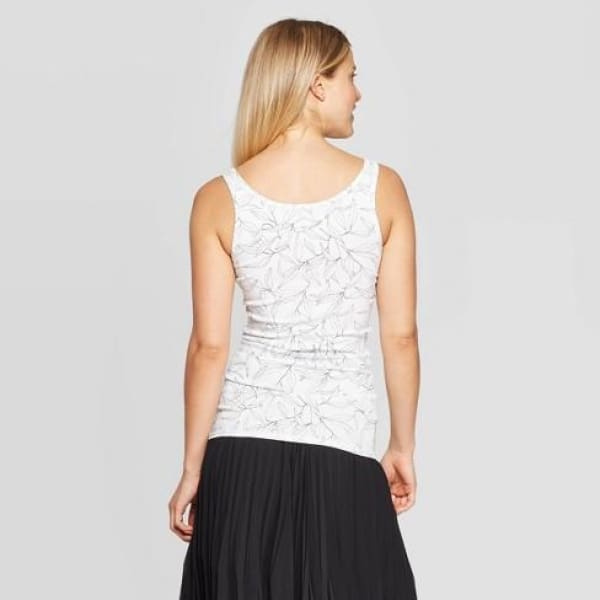 Women's Leaf Print Regular Fit Scoop Neck Tank Top - A New Day White/Black